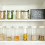 Agrupa por tipo o uso: un rincón para desayuno, otro para repostería, otro para salsas o conservas. Este sistema visual facilita localizar lo que necesitas en segundos y además aporta armonía estética a la cocina.
