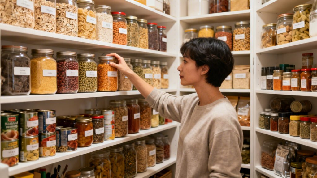 Piensa la despensa como un mapa: coloca lo que usas con frecuencia a la altura de los ojos y las manos, los extras arriba y los productos pesados abajo. Para los niños o la pareja, reserva una zona baja con snacks o ingredientes que puedan coger sin ayuda; eso fomenta el orden porque todos saben dónde buscar. Integra cajas o cestas transparentes para grupos pequeños como sobres de sopa o barritas, y transparenta aún más con botes para harinas y granos. Prioriza accesibilidad sobre estética perfecta: mejor encontrar todo rápido que tener cajones impecables pero inútiles.