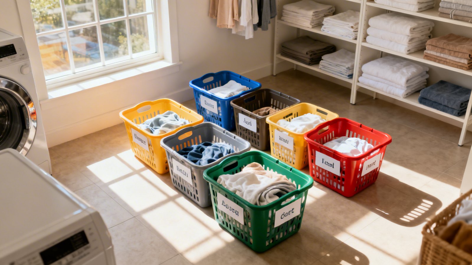 clasificación ropa sucia en cestas organizadas por color y tipo